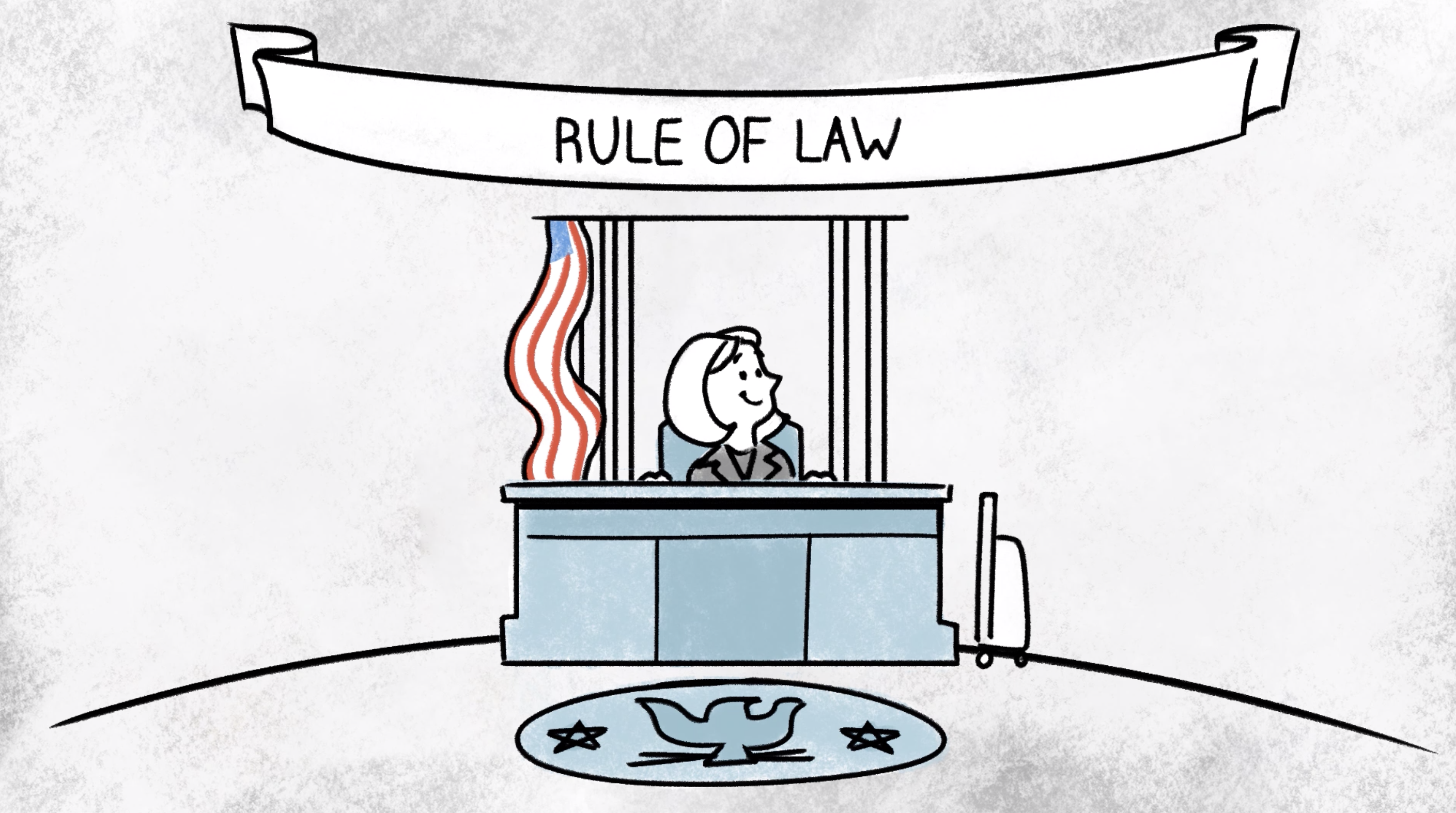 The rule of law is another way of saying that laws, as they are written, are applied equally to everyone without regard for wealth, political power, or status. If an individual or company breaks the law, they face the consequences.